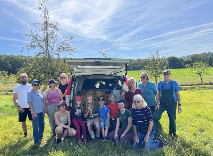 Streuobstwiesen vereinen lichten, waldartigen Baumbestand mit darunterliegenden Wiesen und Weiden. Damit Rinder und Pferde diese Flächen beweiden konnten, wurden vorwiegend hochstämmige Obstbäume gepflanzt. Diese vielfältige Struktur mit den Ausscheidungen der Weidetiere bietet Lebensraum für rund 5.000 Tier- und Pflanzenarten. Streuobstwiesen zählen damit zu den artenreichsten Biotopen in Mitteleuropa und müssen deshalb gefördert und gepflegt werden. Dazu zählt auch die Ernte der Apfel- und Birnbäume, die in diesem Jahr besonders reichhaltig ausfiel.