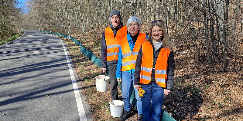 Inzwischen sind die Schutzzäune wieder abgebaut: Auf der Ritterstraße tat dies die Stadt Saarbrücken, die dann in 2027 den Zaun wieder aufbauen wird. Bürgermeisterin Barbara Meyer informierte sich persönlich vor Ort und half beim Transport der Lurche.